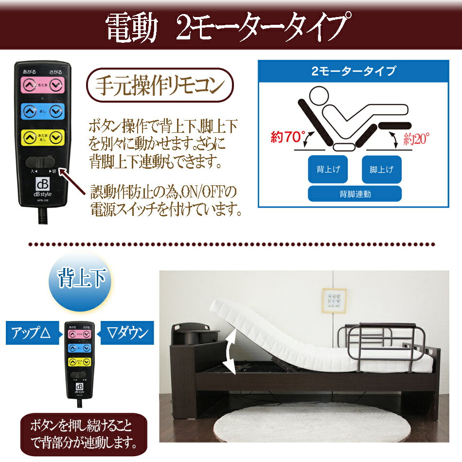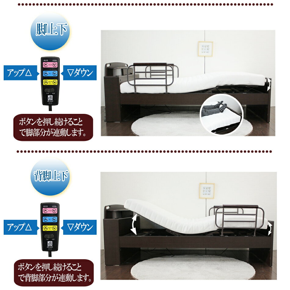 電動リクライニングベッド 電動ベッド マットレス付き ベッド 組立 開梱 設置 非課税 シングル リモコン操作 安心安全 1年間保証 2モーター 背脚連動 手すり付 無段階