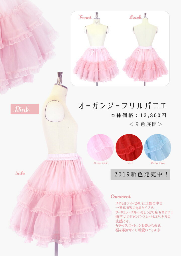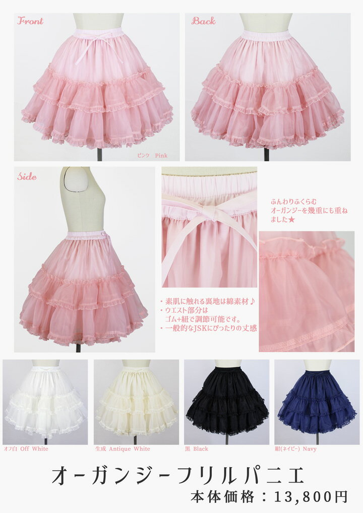 【公式】メタモルフォーゼ metamorphose オーガンジー フリル パニエ 【ロリータ ロリィタ】 アンダーウェア ピンク 黒 紺 オフ白 赤 サックス ボリューム ふわふわ