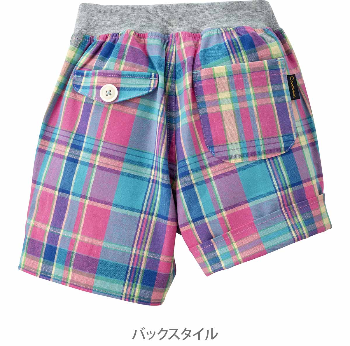 サイズについてCombimini(コンビミニ)2WAYショートパンツ(マドラス) 夏気分が盛り上がる、カラフルな先染めマドラスチェックのショートパンツ。