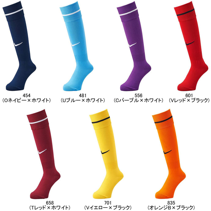 ナイキのサッカーストッキング! ●カラーが豊富な、定番のフットボールソックス!チームでカラーを揃えるのもオススメです! ●ロゴのワンポイント、上部折り返しにライン入りの使いやすいデザインで、様々なユニフォームに合わせやすいです。